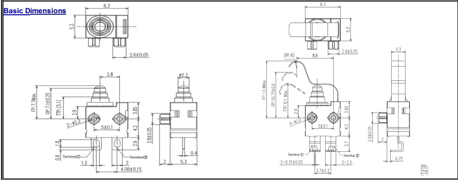 | Electrical rating | 1~50mA/5~16VDC, 40T85, 300,000 cycles |
