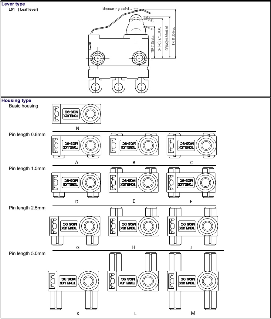| Operation Position | 9.45mm±0.20 (NC), 8.95mm±0.2 (NO) |